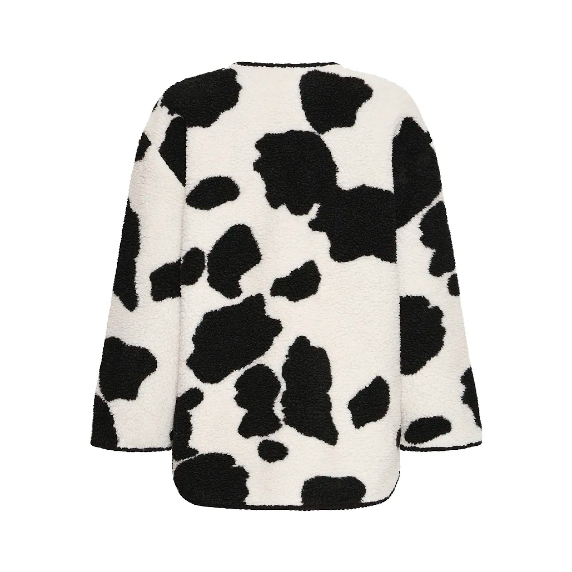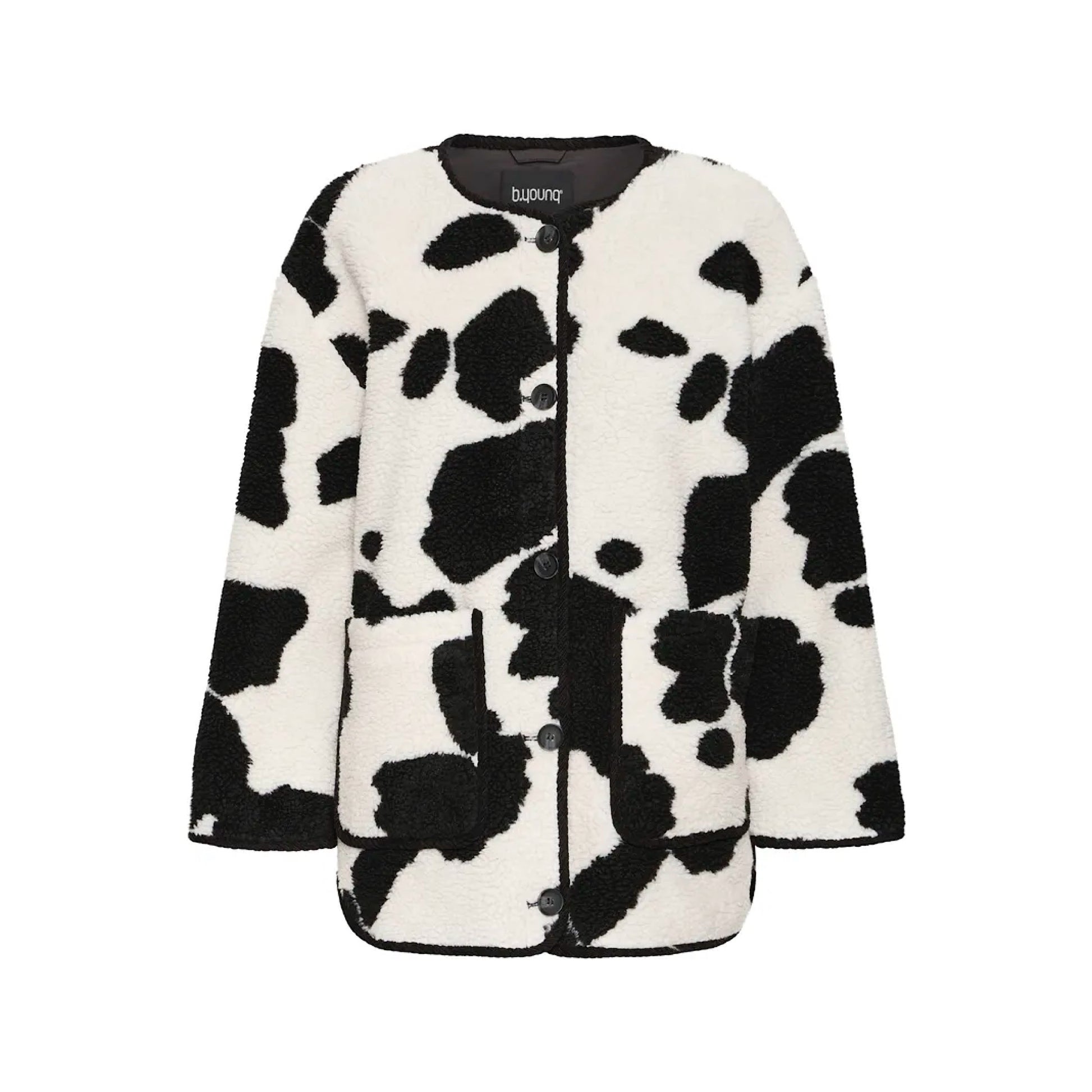 Stay stylish and cozy with the B.Young Cotata Coat. This cow print fleece coat will add a touch of quirkiness to any outfit. Perfect for chilly days, it's both fashionable and functional, keeping you warm while making a statement. Embrace your playful side with this unique coat.