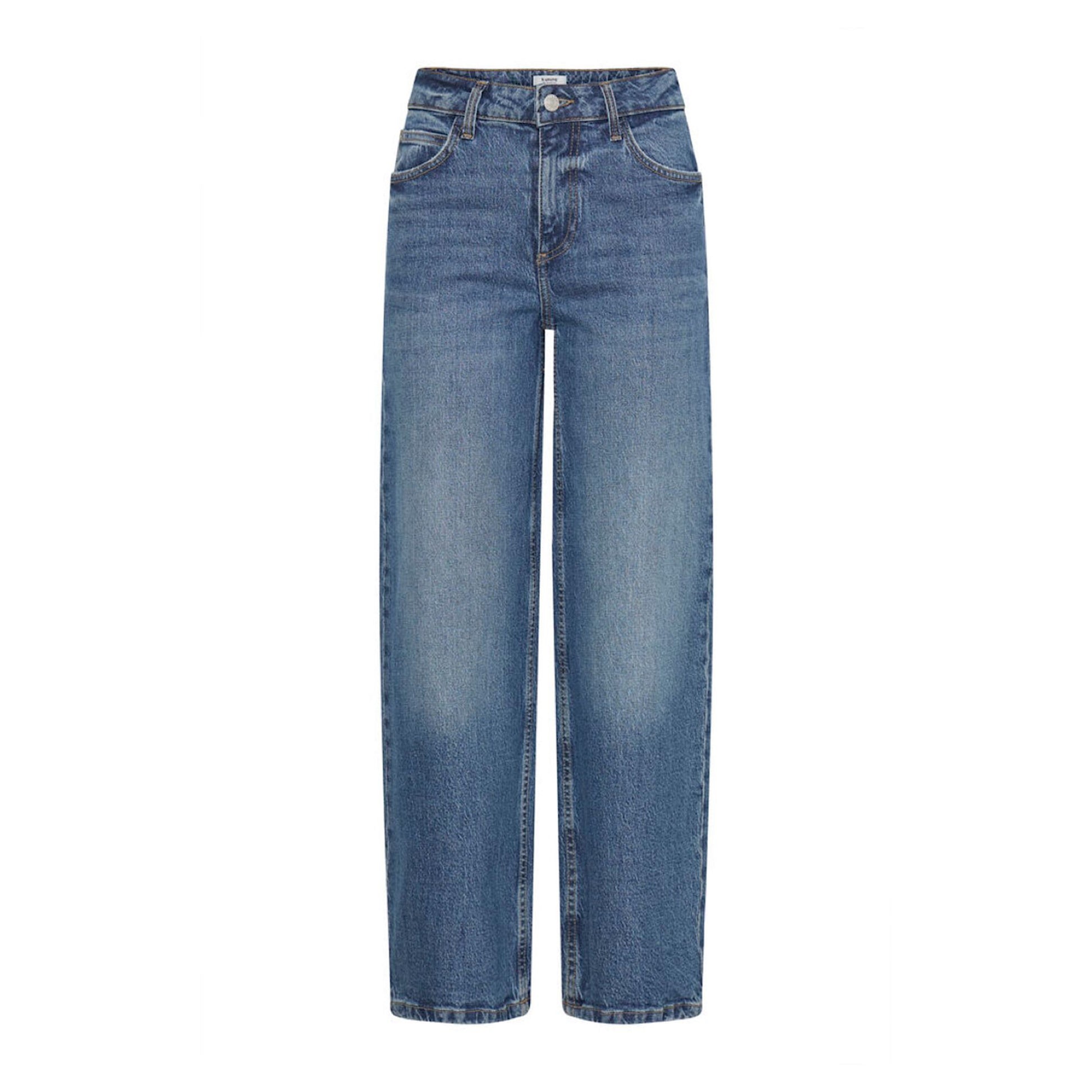 Introducing the B.Young Kyjla Jeans - our top-selling style with a mid waist rise and wide leg. Made with mid blue denim, these jeans are perfect for casual or dressy occasions. Upgrade your wardrobe with this versatile and trendy pair!