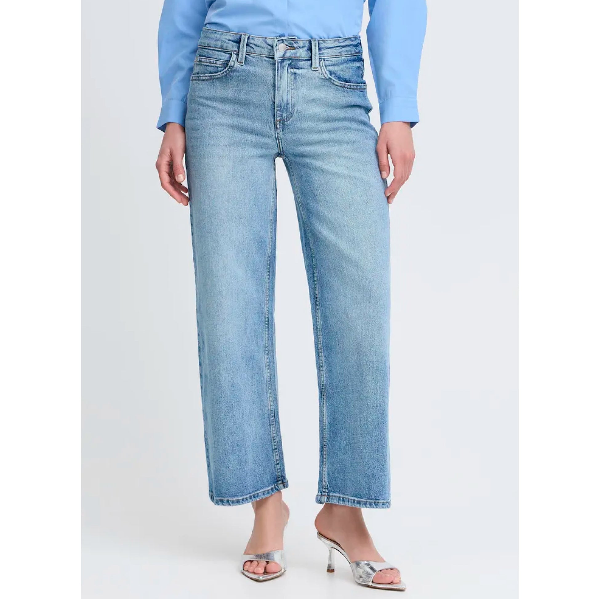 Introducing the B.Young Kyjla Jeans - our top-selling style with a mid waist rise and wide leg. Made with mid blue denim, these jeans are perfect for casual or dressy occasions. Upgrade your wardrobe with this versatile and trendy pair!