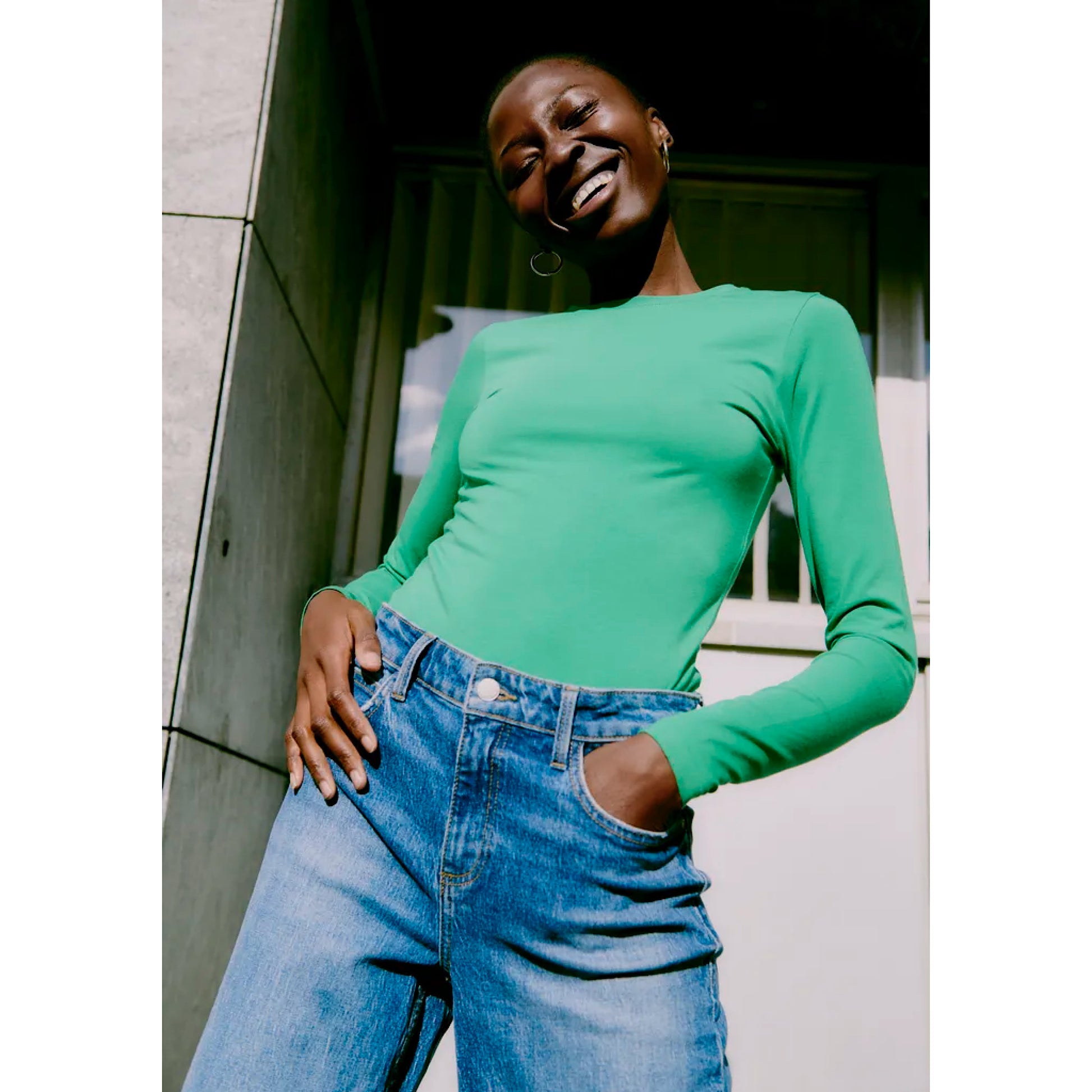 A wardrobe essential. The simple, black long sleeve t shirt. It is a perfect addition to layer under tops in the cooler weather.