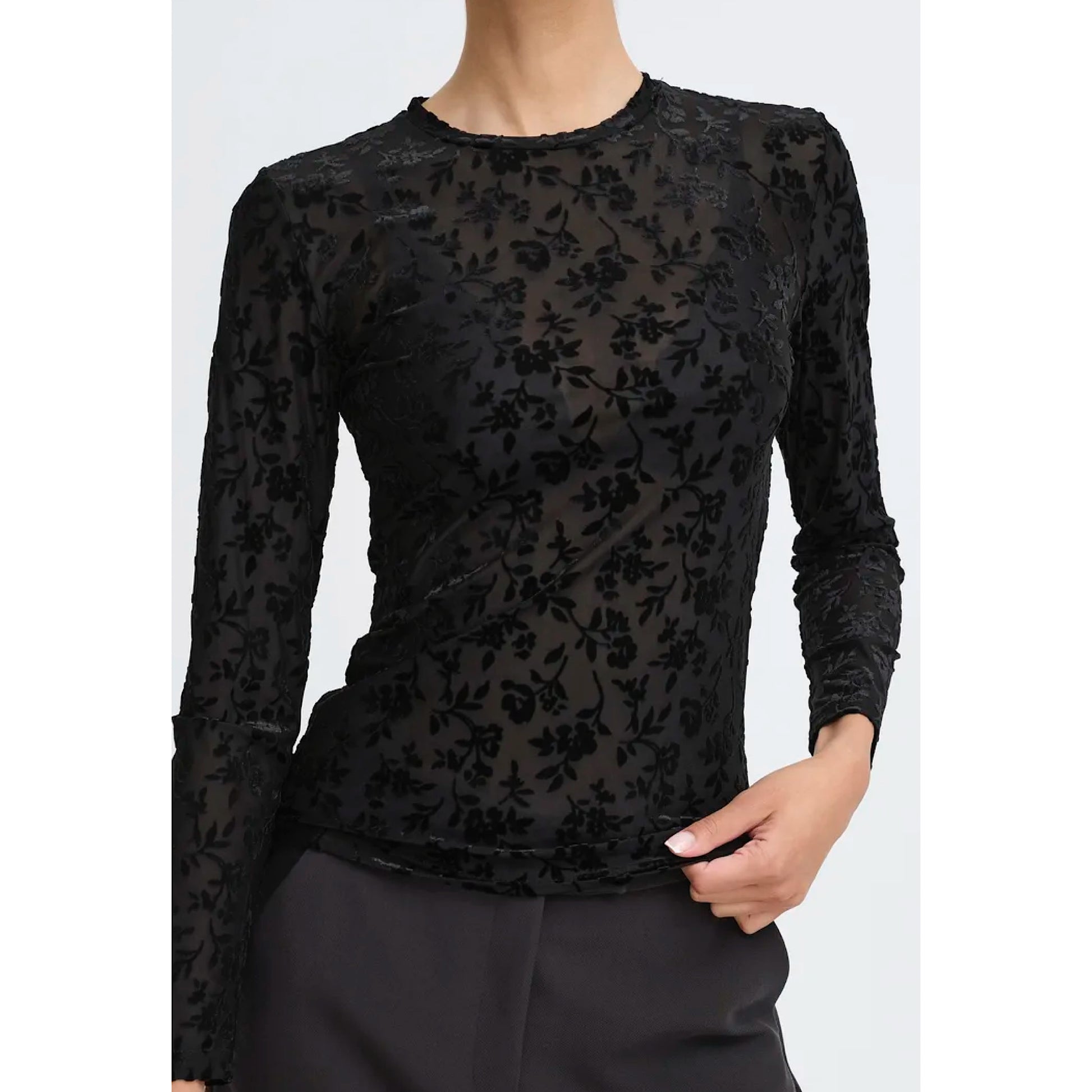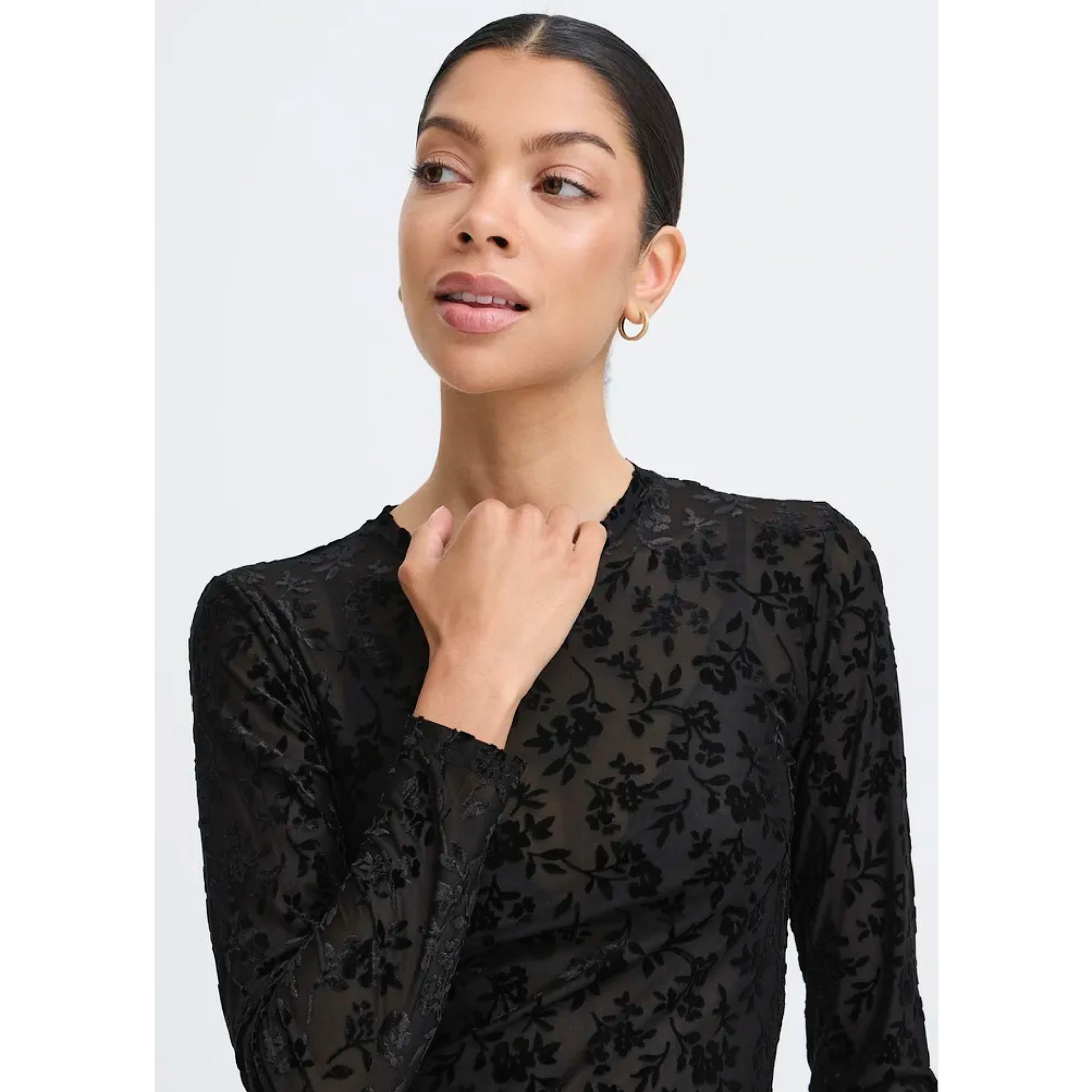 Shake things up with the B.Young Shirley top! This mesh top adds an embossed touch for a classy and chic look. Perfect for parties or adding a layer to your ensemble. (Get ready to turn heads!)