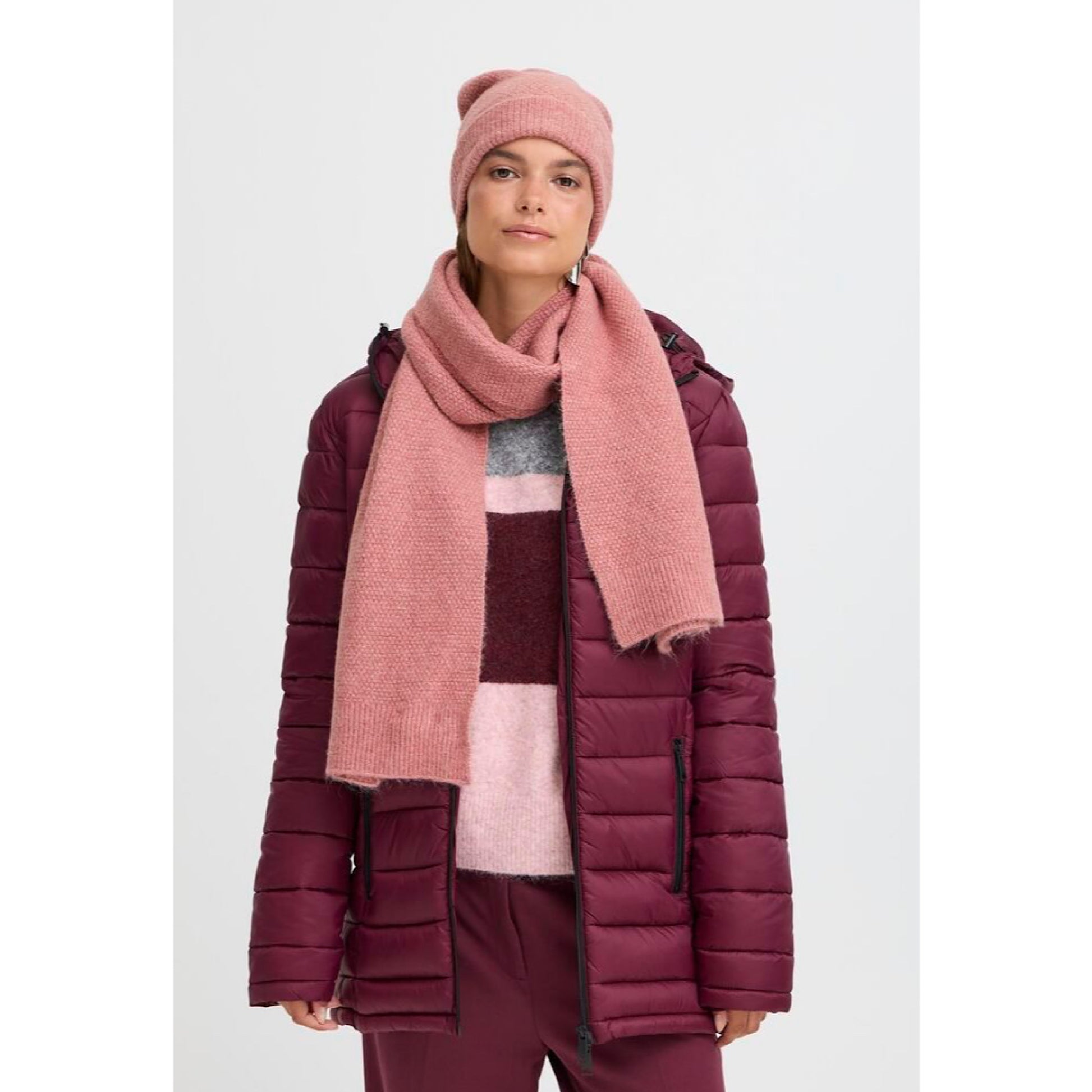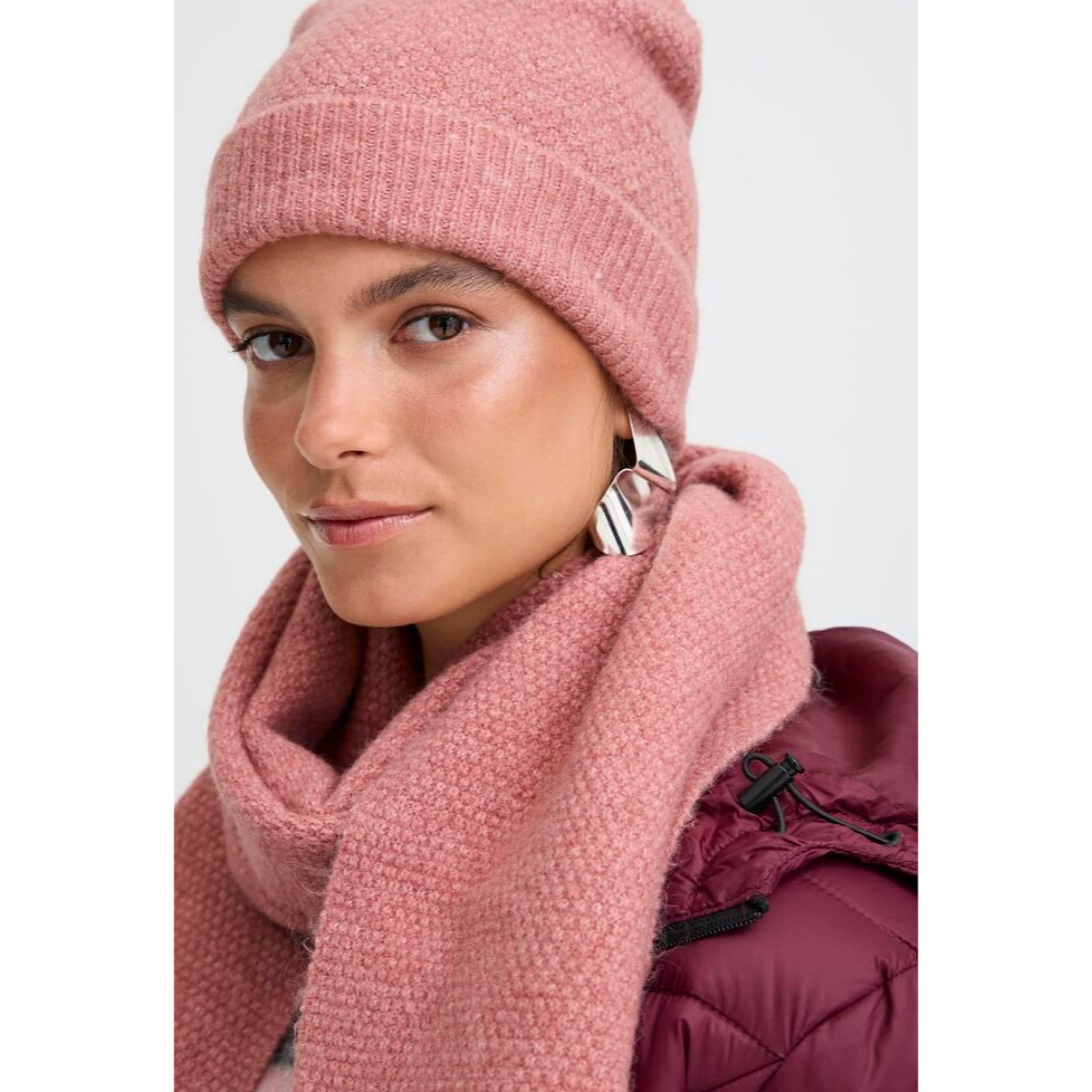 Keep your head warm and stay stylish with our B.Young Vilko Beano set! This playful pair features a cozy knitted pink beanie and a matching vilko scarf. Perfect for those chilly days, it's the ultimate combination of fashion and function.