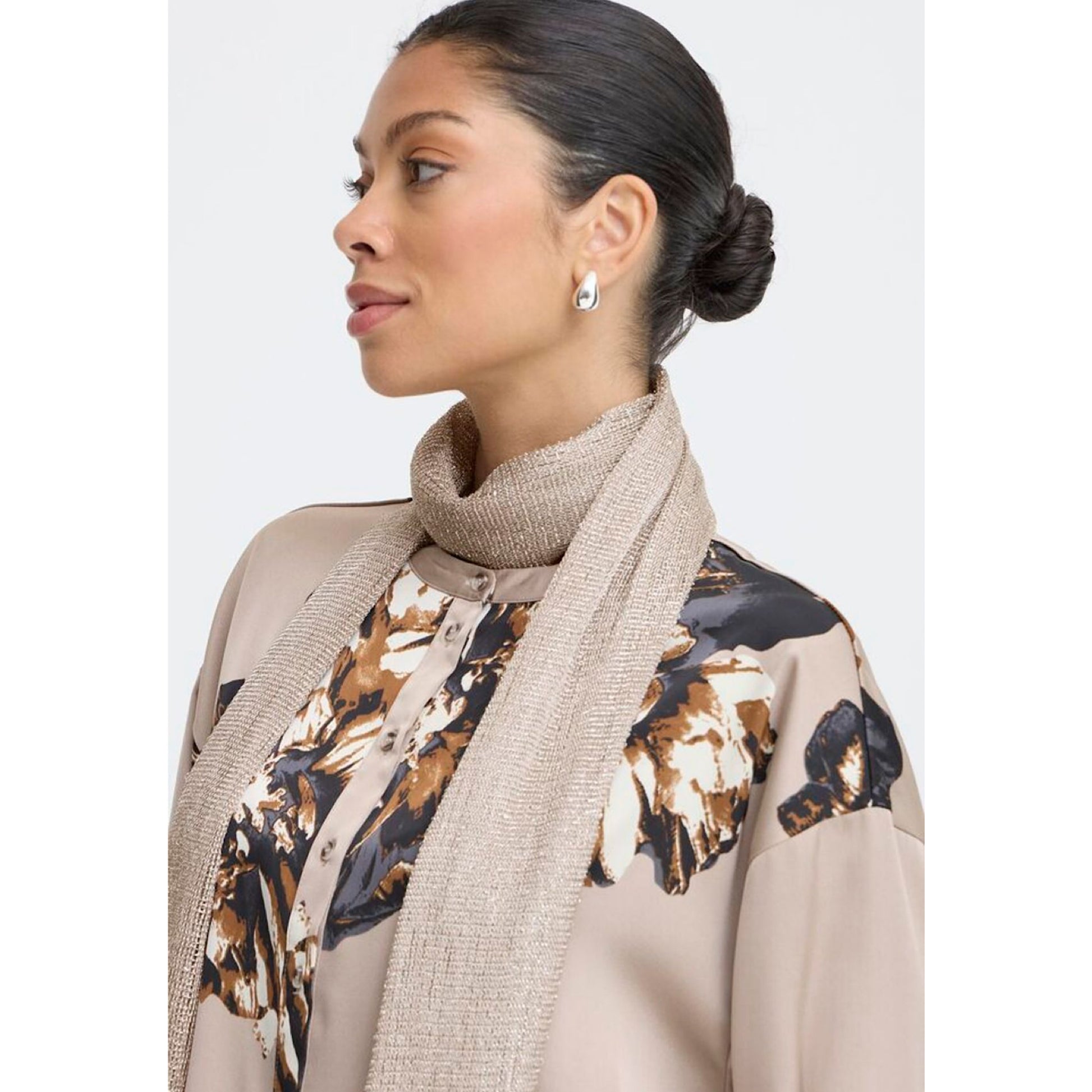 Add a touch of glamour to your evening look with the B.Young Voet Scarf. Its light weight and metallic yarn make it the perfect accessory for any occasion. Elevate your style and shine bright with this must-have piece.