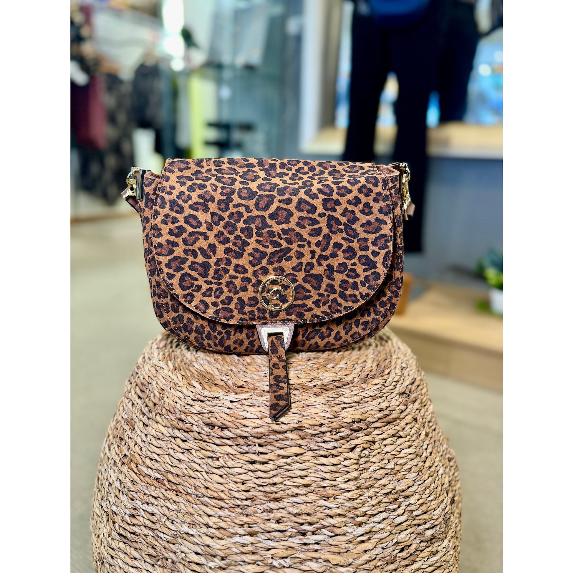 Get wild with the Carmela Leopard Cross Body Handbag! Made with top-notch leather, synthetic materials, and textiles, this bag features two compartments with a magnetic flap closure, exterior and interior zippered pockets, and a removable, adjustable strap. Plus, it comes with a dust bag and a metal Carmela logo. Dimensions: 25 cm x 20 cm x 8 cm.