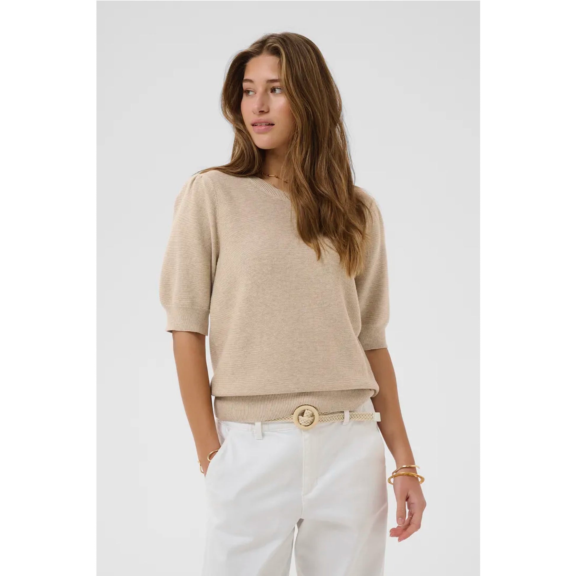 Introducing the Cream Sillar Knit Top —the perfect blend of cozy and chic! With shorter sleeves to help you transition through the seasons.