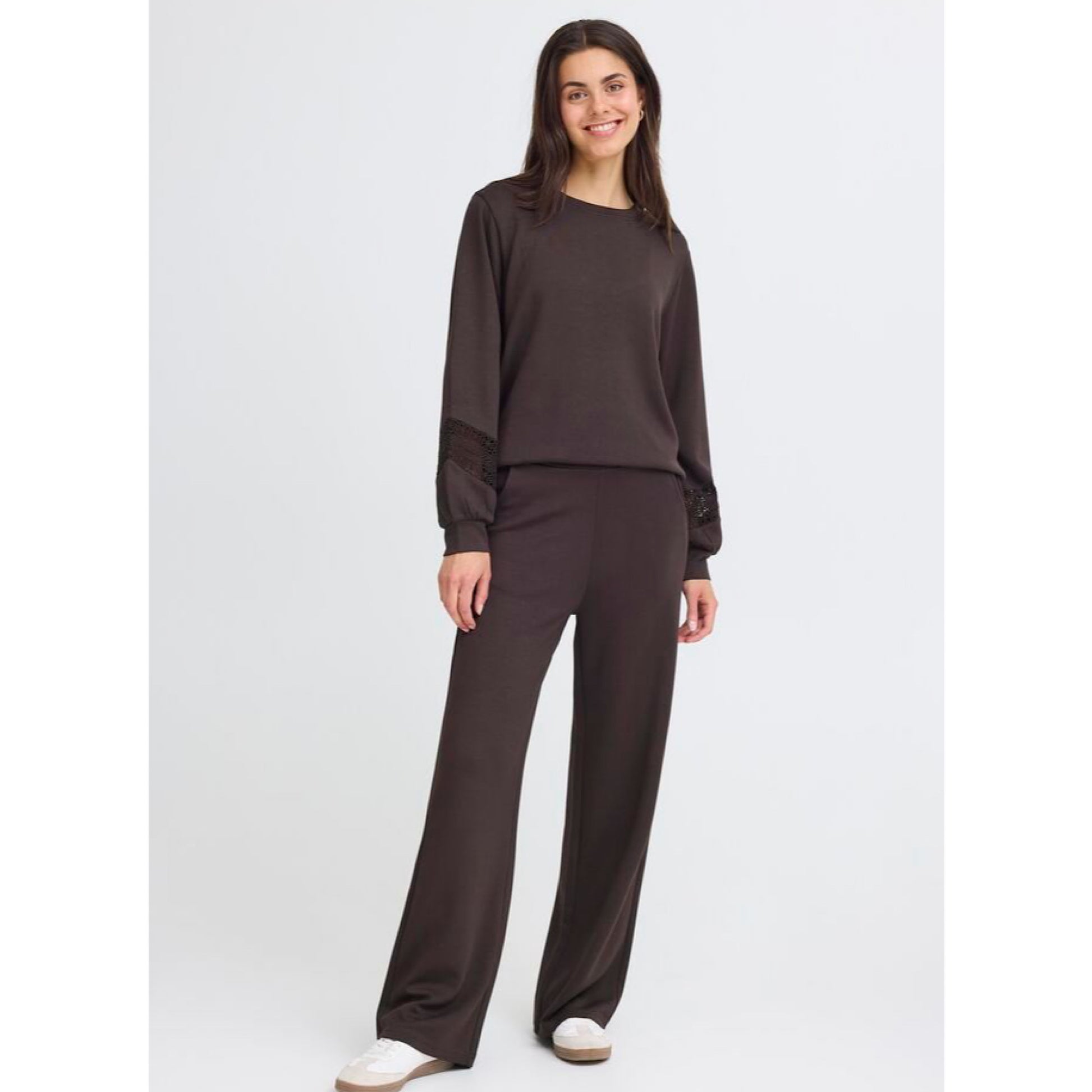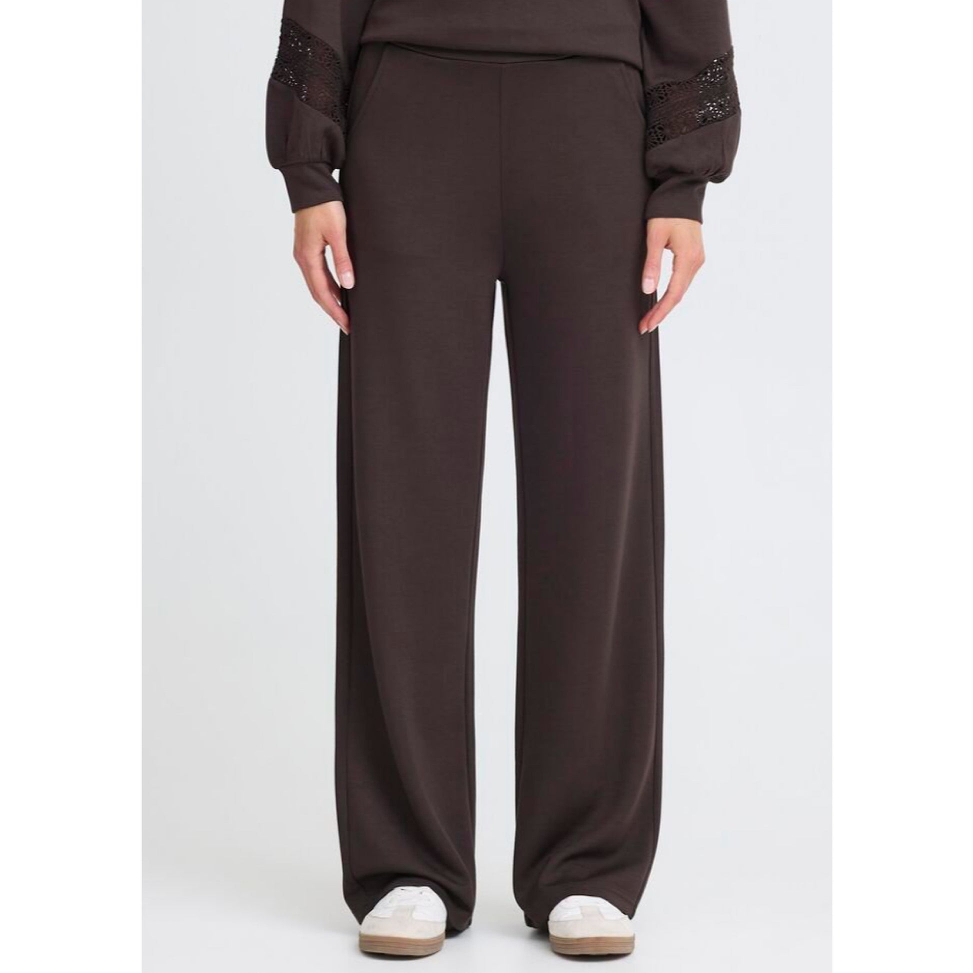 Introducing the Fransa Aurora Trousers - the ultimate in luxe loungewear! In a rich chocolate torte colour, you'll be both comfortable and stylish with the elastic waist and straight leg design. Perfect for a day of lounging or a night out (if you're feeling fancy).