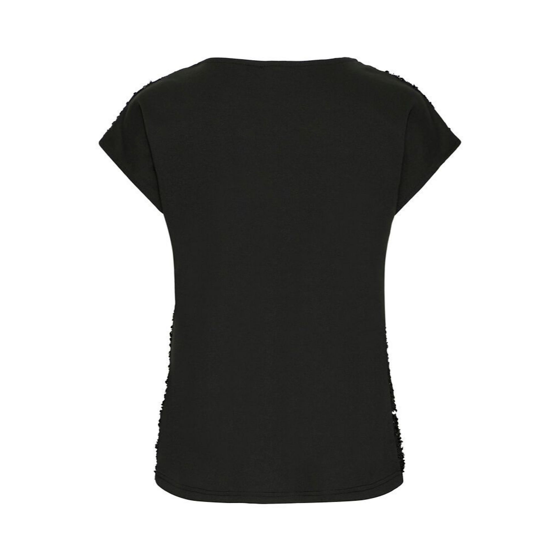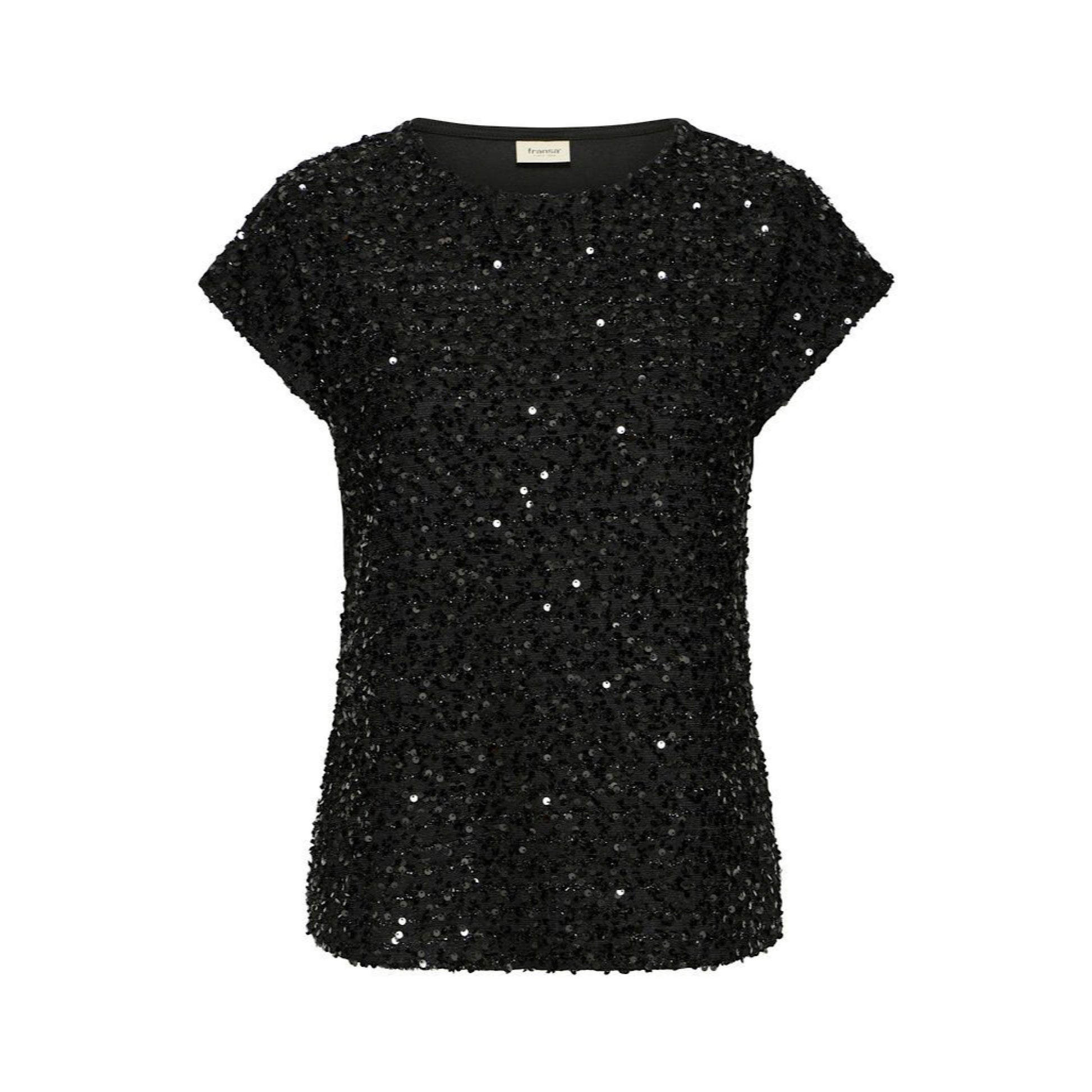 Add some sparkle to your wardrobe with the Fransa Charlotta Top! This evening top features a stunning sequin front that will catch everyone's eye. The round neck and cap sleeves add a touch of elegance to this playful and fun top. Shine on with this unique piece!