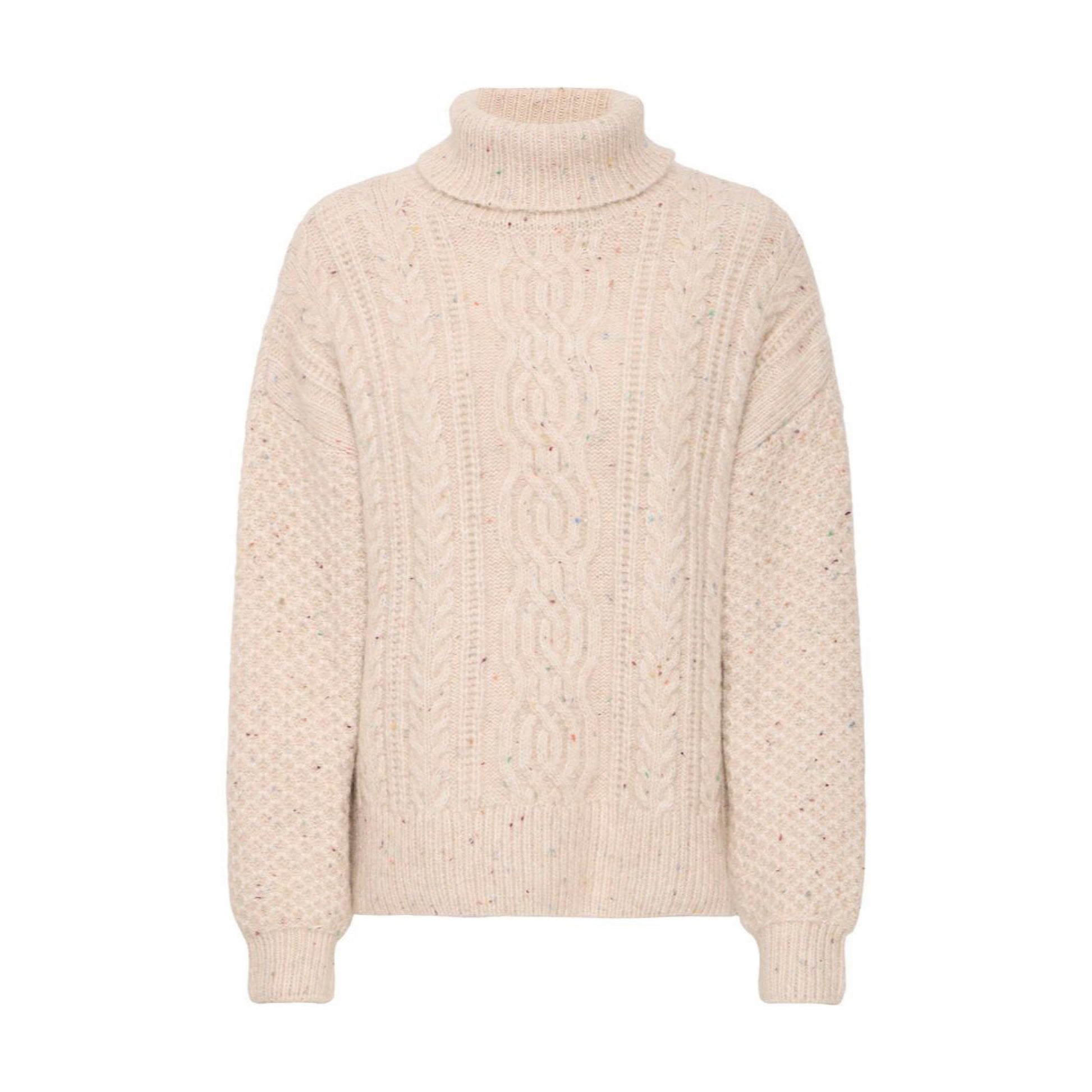 Snuggle up in the Fransa Ellea Rollneck! This winter warmer features a cozy cable knit roll neck that will keep you warm and stylish. Perfect for those chilly days, this sweater is sure to become your go-to for ultimate comfort.