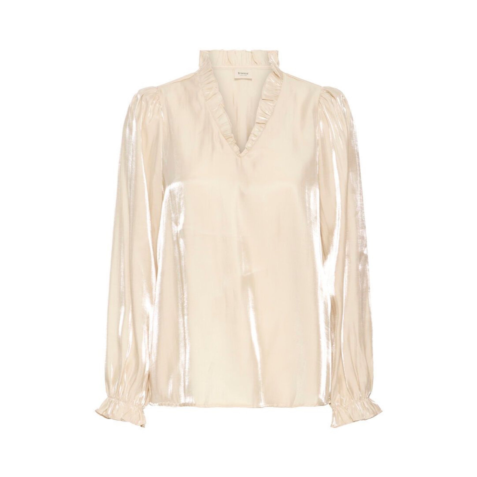 Looking for a blouse that's both chic and versatile? Say hello to the Fransa Yolanda Blouse! This oyster-coloured v-neck blouse is perfect for both casual outings and evening wear (and it's just as stylish as it is comfortable!)