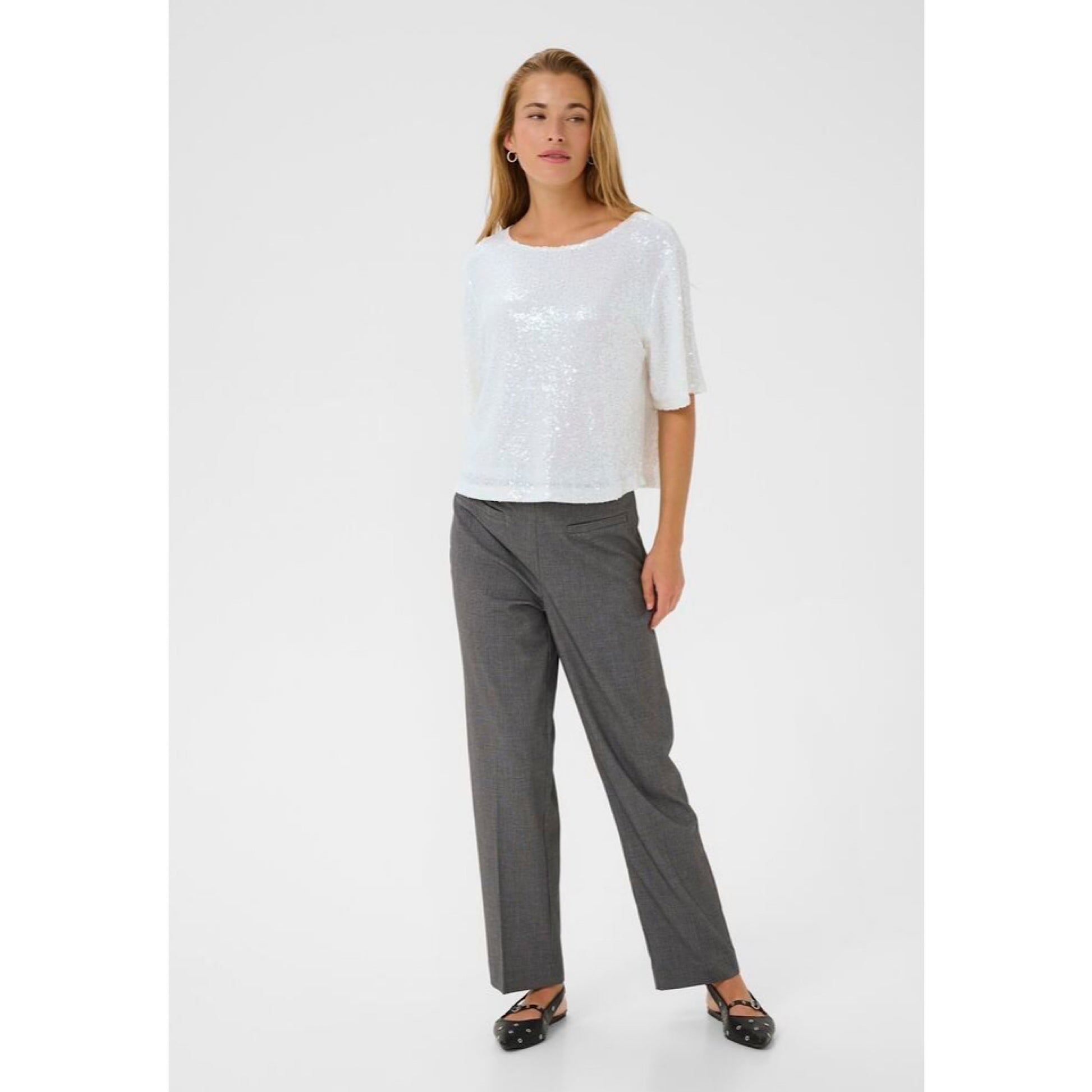 This playful Kaffe Miranda Sequin Blouse features a relaxed fit and short sleeves, perfect for a whimsical day out. With its chalk white color and round neck design, it's both versatile and stylish. And let's not forget the sparkling sequins that add a touch of magic to any outfit!