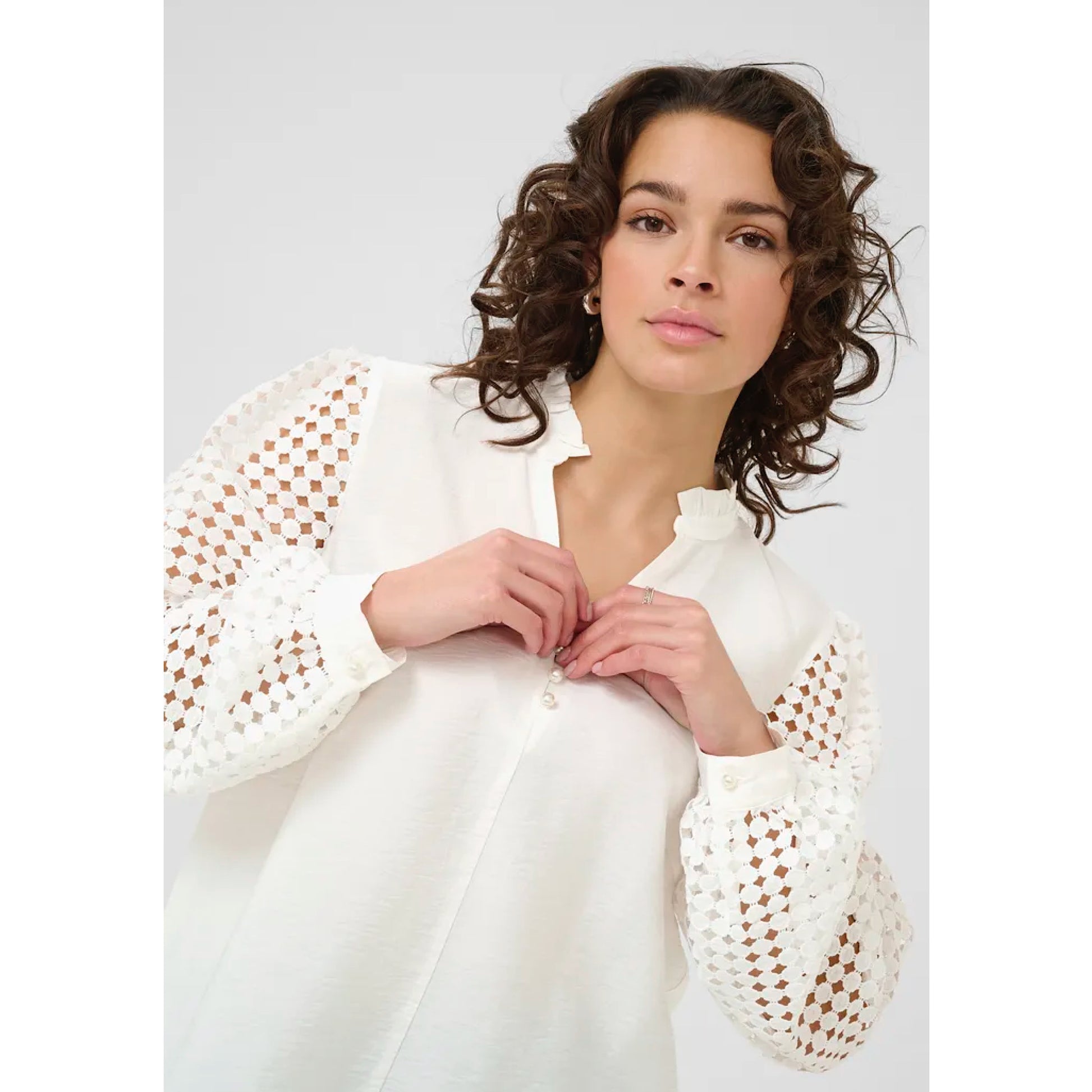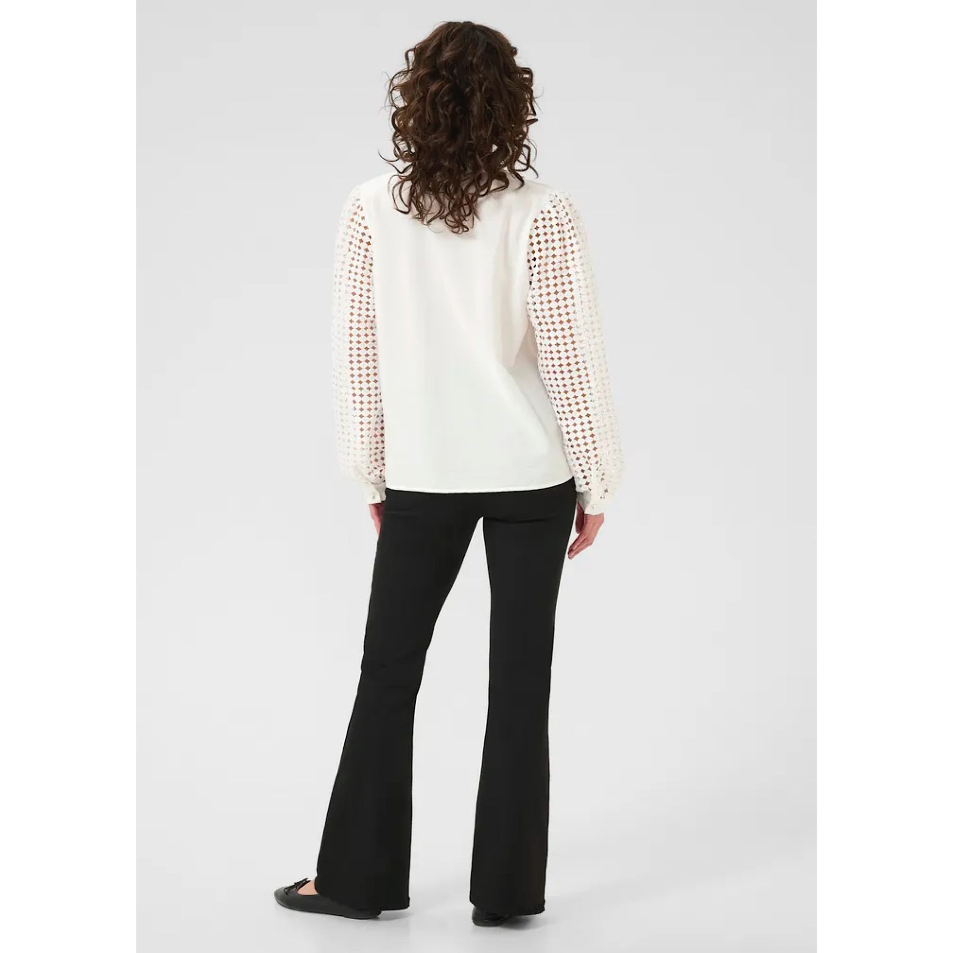 Meet our Kaffe Tulle Blouse - a must-have for any fashionista! With its playful laser cut sleeves, flirty v-neck, and versatile day to night style, this cute top will elevate any outfit. Be ready for compliments (and possibly a few envious stares) when you rock this quirky blouse!