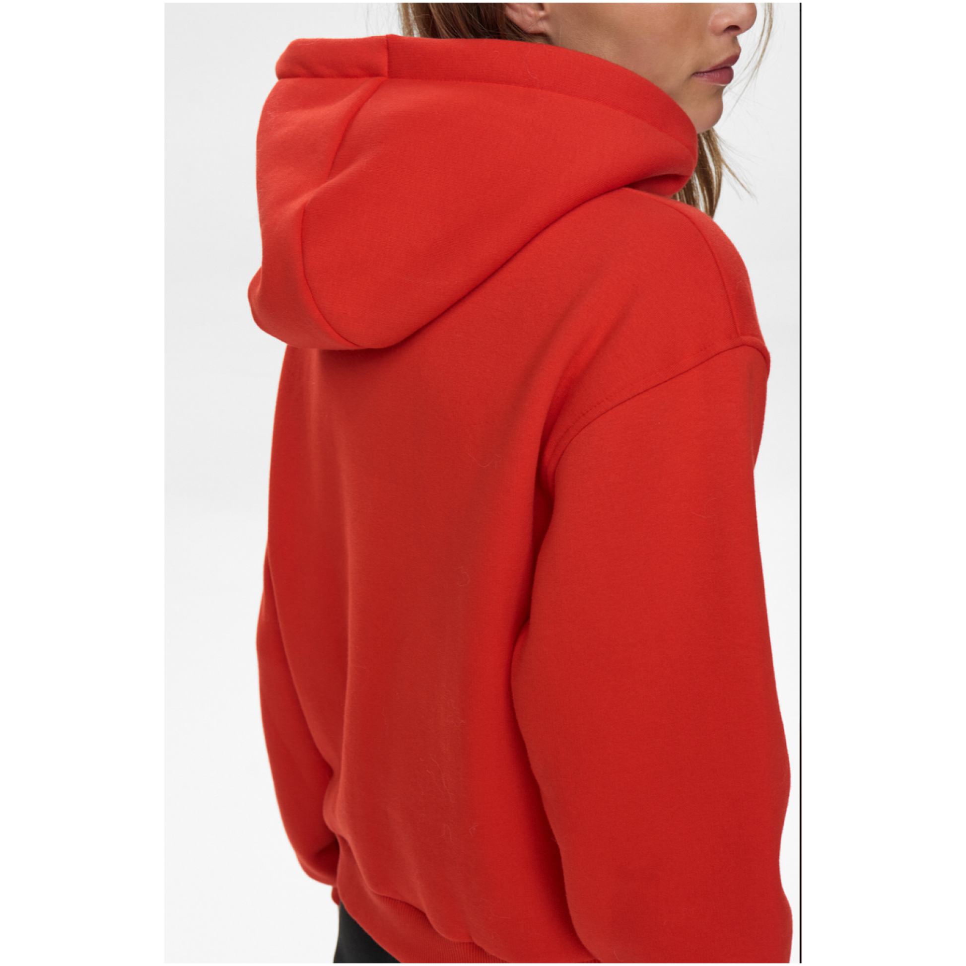 Stay cozy and chic in the fiery red Numph Tyra Hoodie. Made with luxe fabric, this hoodie is perfect for both lounging and making a statement. Upgrade your loungewear game with this stylish piece.