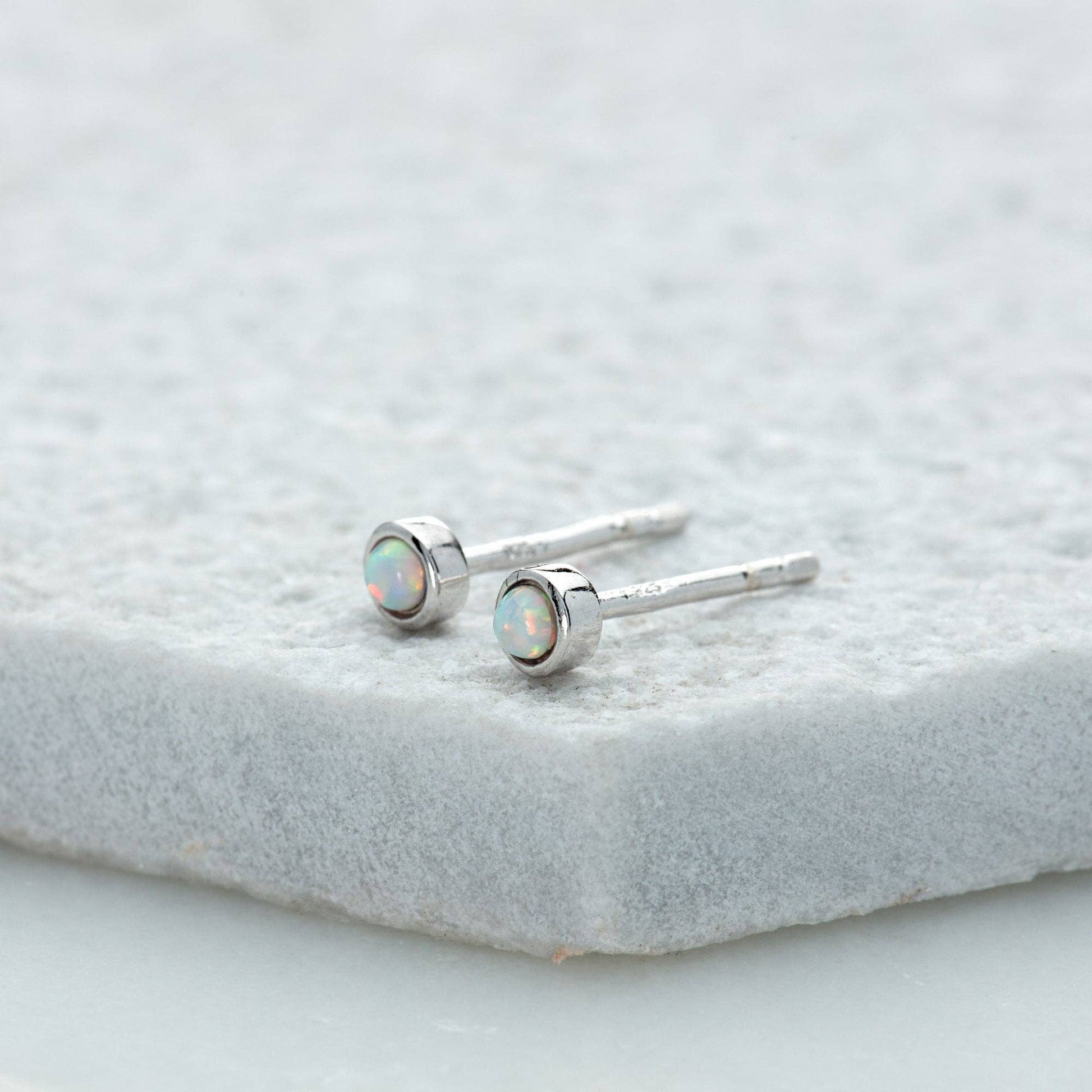 - Stones: White Opal • Dimensions: 3mm Stud