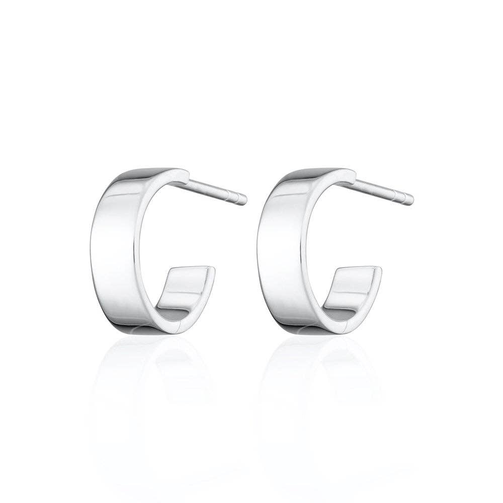 Earring Type: Small Hoop Earring with Post and Butterfly Clasp Ideal for classic everyday styling, these wide huggie hoop earrings are have been crafted from recycled 925 sterling silver with the option of 18ct gold plating.
