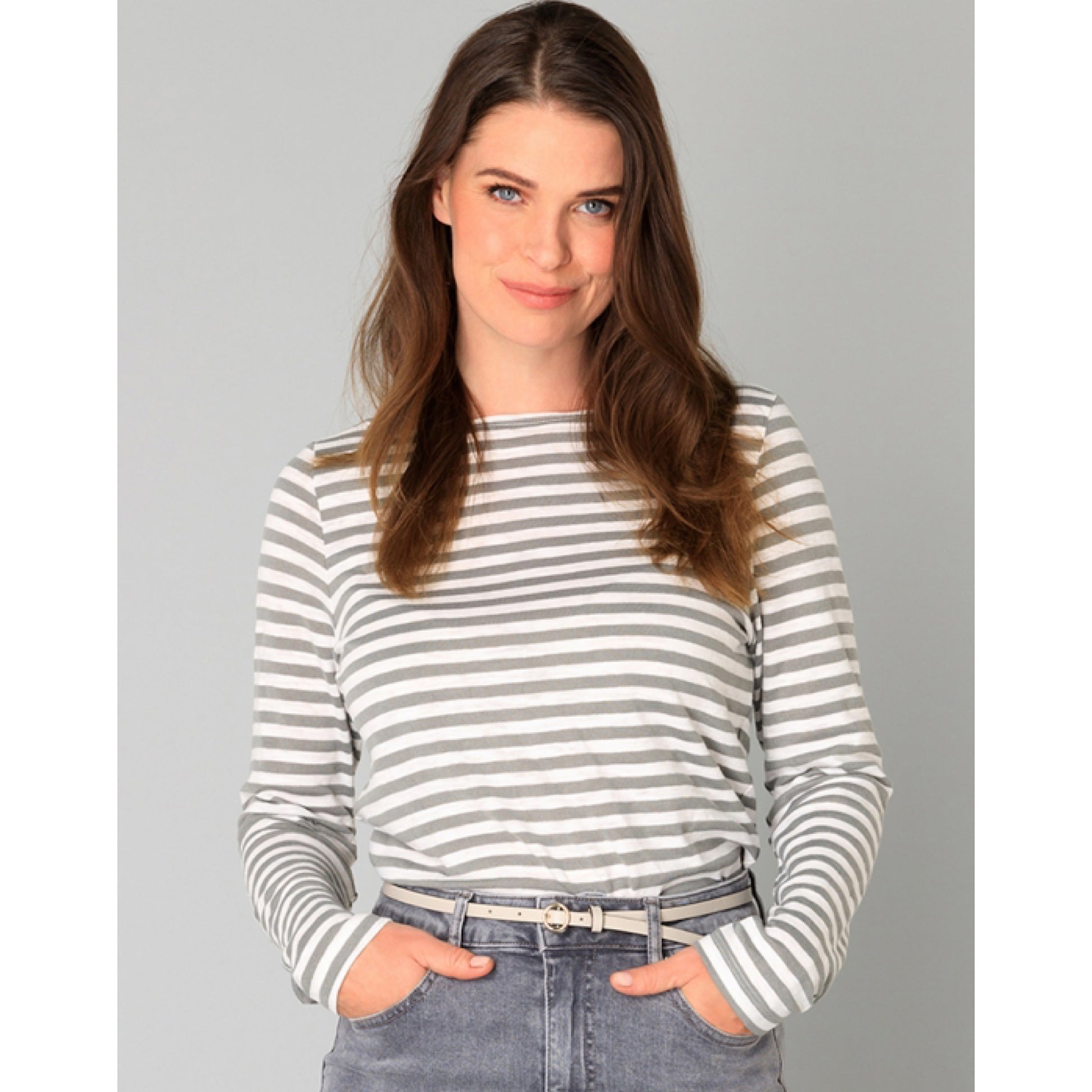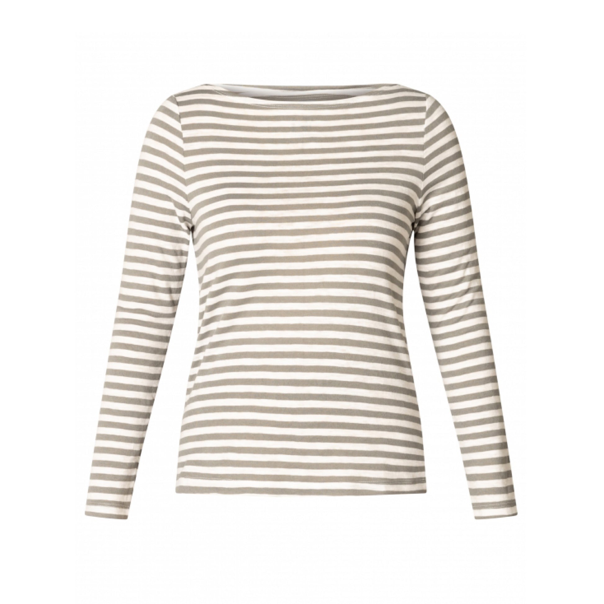 Hop into casual style with the Yest Bunny Top! This longsleeve features a boat neck, soft polyester-cotton blend, and stretch for a perfect fit. Its subtle stripes add a touch of timeless charm, while the Yest Brigitte Cardigan creates a stylish layered look. Perfect for any laid-back day.