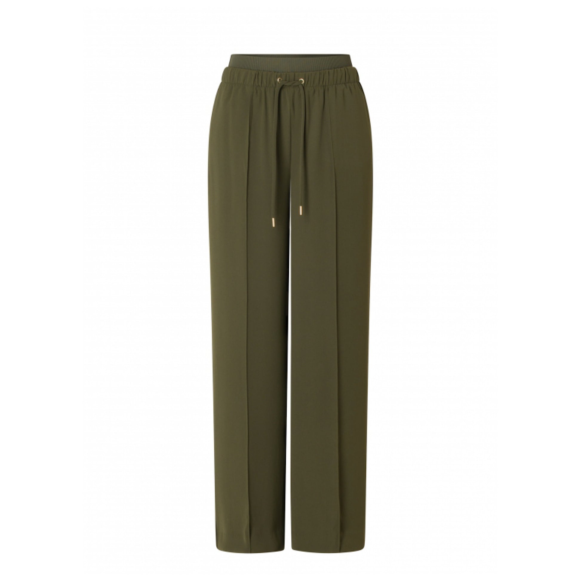Introducing the Yest Cassia Trousers - the perfect balance of comfort and style! These trousers feature a loose fit, elasticated waistband, and a seam down the centre of the leg for a flattering silhouette. Plus, with options in port and army green, you'll always have a cool choice for any occasion.